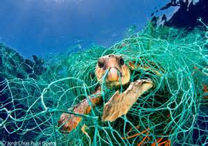 has got trapped by a net lost in the bay