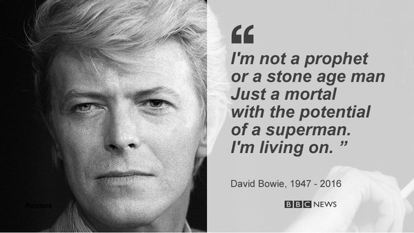 As a fan he will be a great loss to music, film and the creative industry in general and whilst I am not into patriotism I am quite proud to be British where certain things are concerned like Bowie who was and is an icon of Britain. He always will be. I will miss that silky smooth voice of his very much as well as that huge boundless talent.